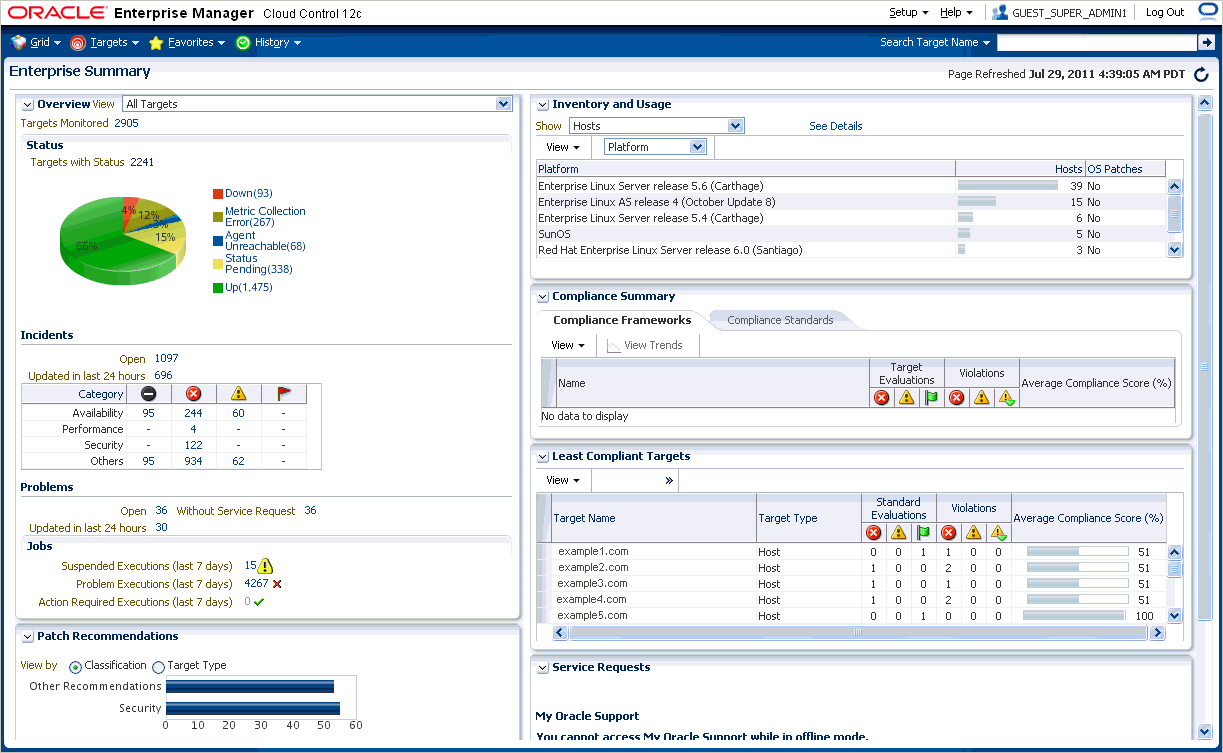 Enterprise Manager Cloud Control is system management software that delivers centralized monitoring, administration, and life cycle management functionality for the complete IT infrastructure, including systems running Oracle and non-Oracle technologies.Your environment may comprise multiple Oracle Databases, Oracle WebLogic Servers, Web applications deployed on these servers, hosts running these targets, and so on. You can, of course, use the individual product consoles to monitor the status of each of these targets, but it becomes cumbersome to shuttle between multiple console windows and track the performance of each of these targets using so many windows.